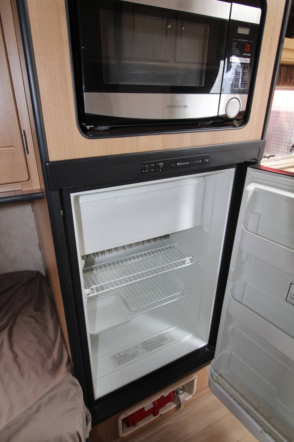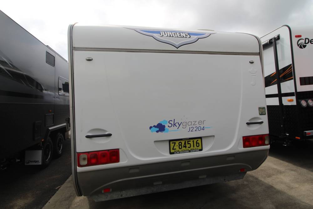 The Jurgens Skygazer J2204 is equipped with a kitchen that offers plenty of bench space and seating for meal preparation and dining. Despite its compact size, this caravan doesn't compromise on functionality. It features a three-way fridge, gas cooktop, and microwave, as well as ample storage space for your supplies and belongings.